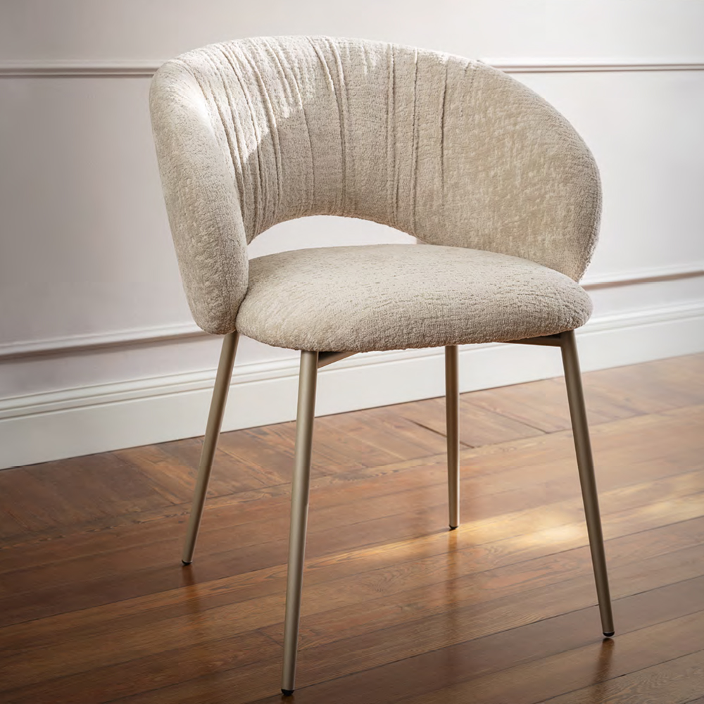 Immagina di sederti dopo una lunga giornata: il suo design dalle proporzioni perfette ti accoglie come un abbraccio discreto ma solido. Il sedile e lo schienale, sontuosamente imbottiti, sono pensati per coccolarti, regalandoti un momento di puro benessere sia durante una cena vivace che in un quieto momento di riflessione.